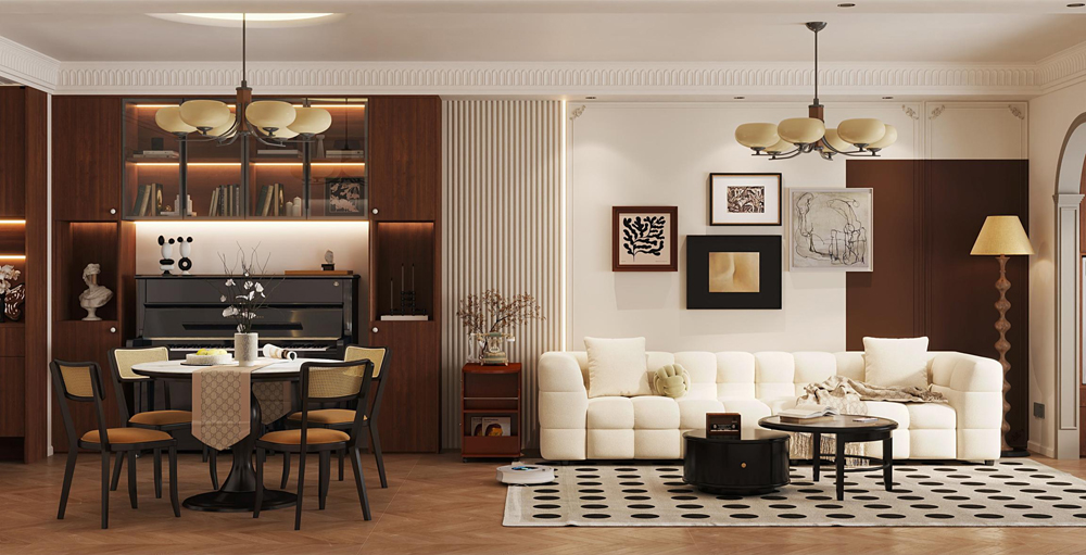 全友欧松U+板主要采用德国夏特高品质饰面纸,花色丰富,紧跟市场潮流,通过100000+用户数据调研分析,筛选出多种畅销花色,可适配现代风、极简风、奶油风、北欧风等多种热门装修风格,满足不同消费者的个性化需求。与此同时,全友还贯彻了“产品全案化设计”理念,确保所有产品设计元素、配色等调性统一,达到全屋色彩搭配视觉协调,真正实现整家高颜值搭配。