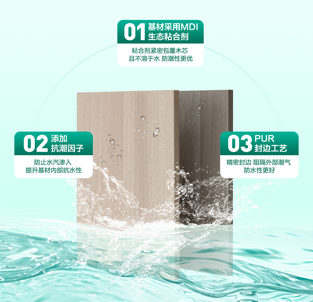 防水防潮:全友欧松U+板采用创新三重防护设计:内部融入抗潮因子,提升基材芯层内部抗水性能,防止水汽渗入,芯材采用的环保MDI,不溶于水,有高强度的包覆性,让板材拥有优异的防水防潮性能 樱花视频网站,先进的PUR封边技术,能够有效防止潮湿和污染物进入板材内部,大大提高了板材的耐用度和防潮性。