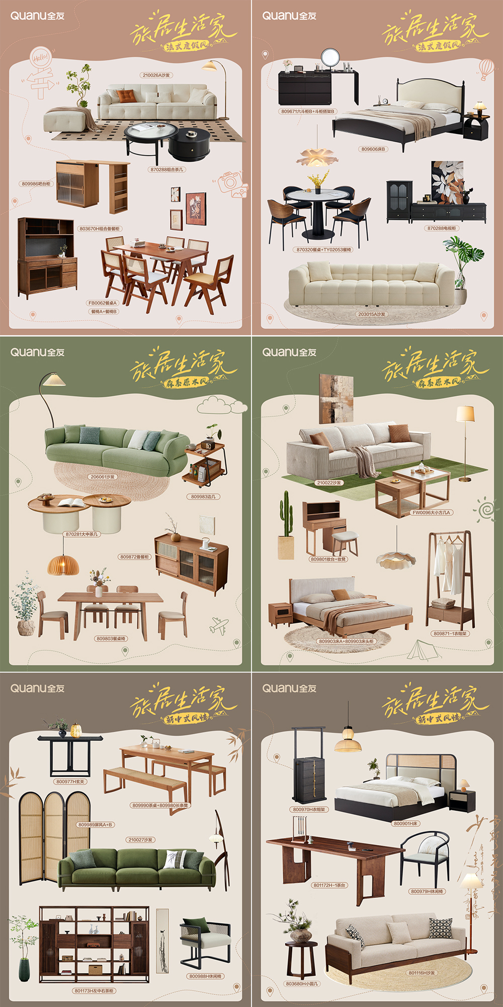在与旅居达人携手探索新生活方式的同时,全友也在积极推陈出新,发布了风格更多样、款式更丰富的高品质家居产品。原木风、法式风、新中式风……多种风格搭配,精准契合不同用户的审美偏好与功能需求。